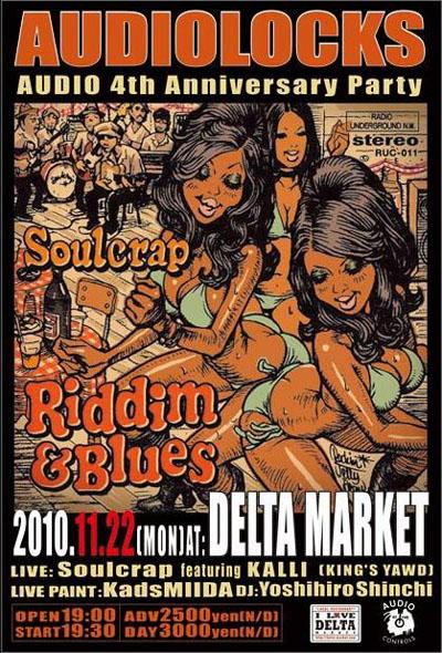 round.を始める随分前からお世話になっているミキさんと店長タカアキ君がいる素敵なセレクトショップ「AUDIO」の4周年記念のイベントが11月22日(月)に、これまたお世話になっているジャミさん率いるレストランバー「DELTA MARKET」にて開催されます。