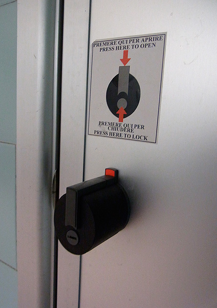 床や壁の目地、表示板などが揃っていないのはイタリア人の愛嬌でしょうか。