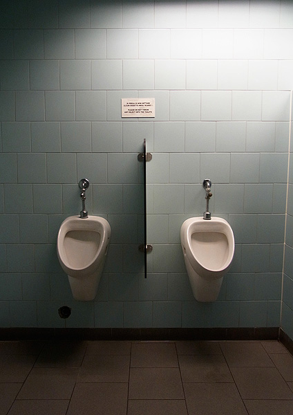 昼白色の蛍光灯ながら控えめの照度。そして久し振りに経験する高い小便器。