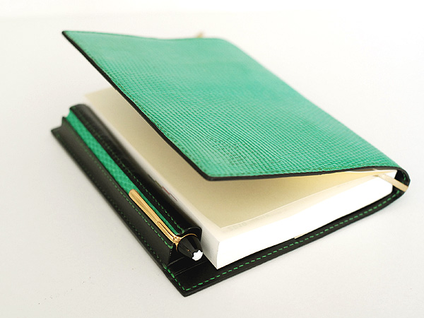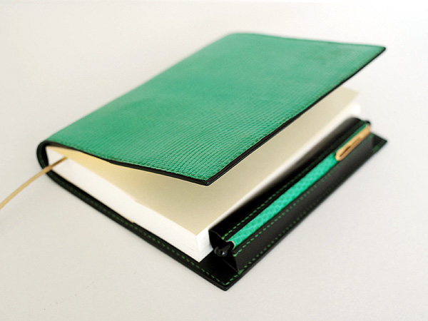 ペンクリップの収納部に外革と同じリザードのラインを入れ、ワンポイントに。