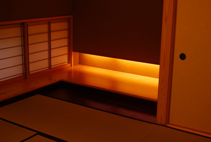 こちらは1階和室の床の間。和室の基本を押さえながらも、モダンな床の間になっていました。トチの木の床板・地板も共に某家具屋が製作。こんな感じで、数少ない使える画像を載せてみました。