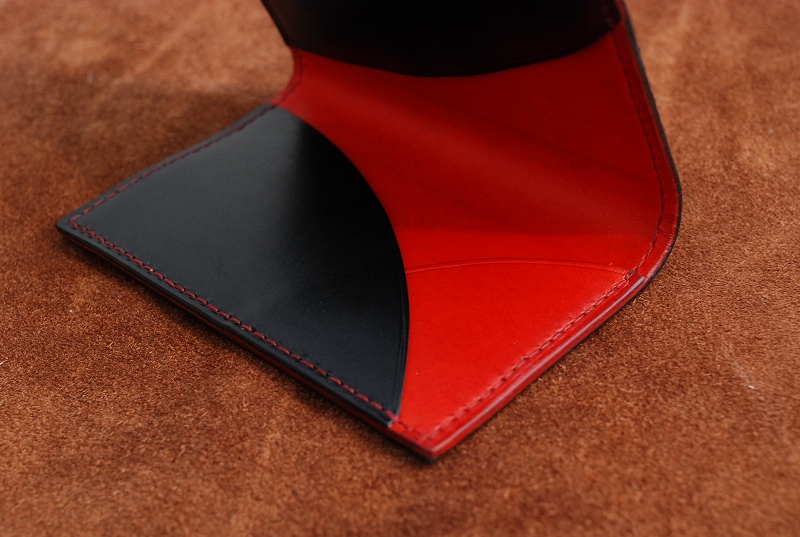 今回は、先日某セレクトショップ店長用にお任せで製作した薄めの名刺ケース。お任せということで私がイメージした彼のイメージはドラキュラ伯爵。という訳でこんな感じにしてみました。