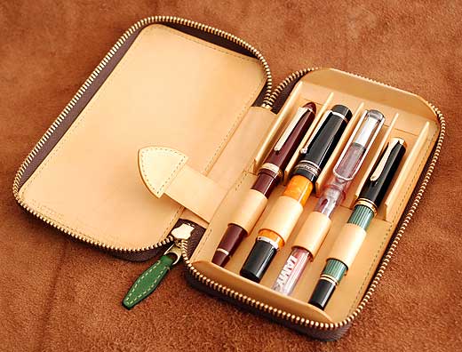 当店では、使用する皮革の種類及び色、縫い糸の色など自由に選択して頂くセミオーダーでの製作 、さらにお手持ちの筆記具の形状に合わせ木型を製作し製作するフルオーダーでの製作も可能です。 納期・金額などお気軽にお問い合わせ下さい。