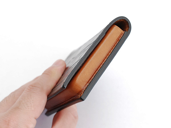 ストック側はもっと奥まで名刺が入ります。写真は少し出ている状態です・・・。