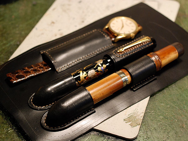 こちら、フルオーダーで製作している「万年筆・時計ケース」です。