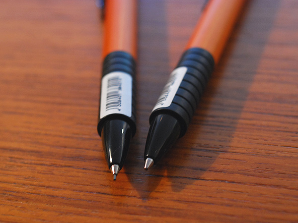 ボールペン、シャープペン共にフォルムはほぼ同じで、ノックした時に出てくるペン先のみ違っております。