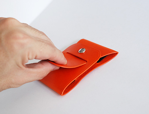 こちらも、1枚革を折りたたんでホックで留めているタイプ。