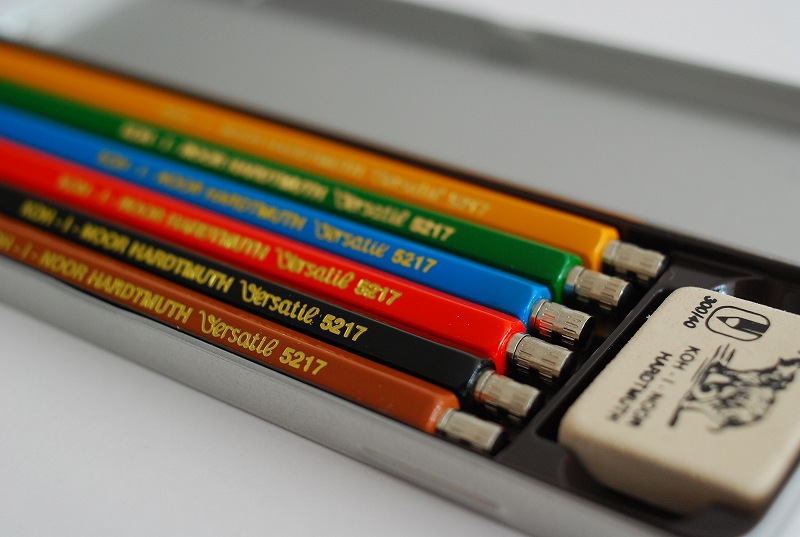 コヒノール社の芯ホルダー5217の6本(芯はボディと同じ色です)+消しゴムのセット(4,725円)